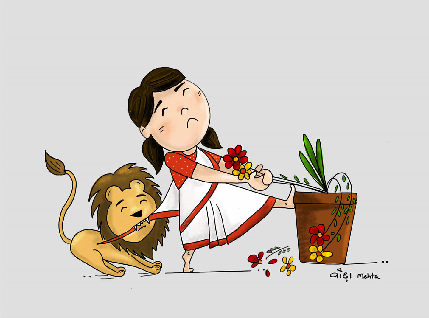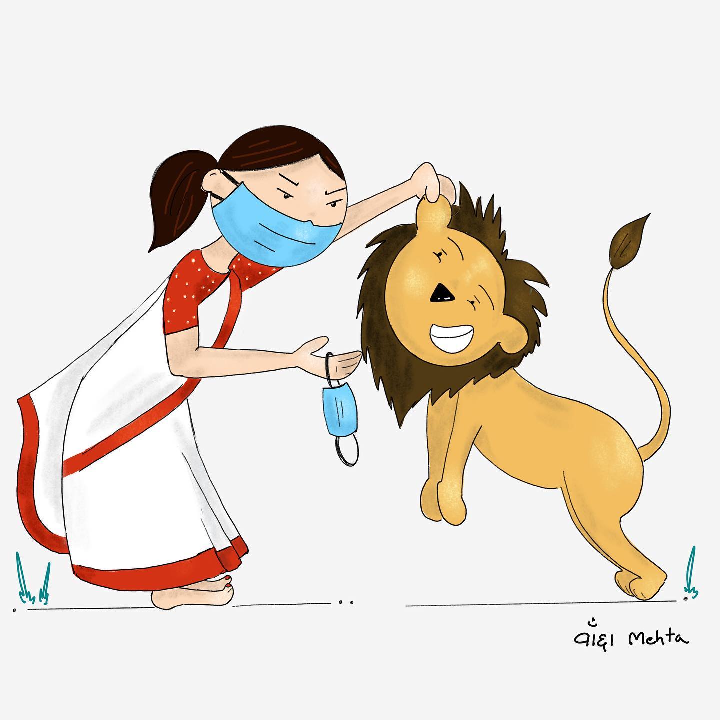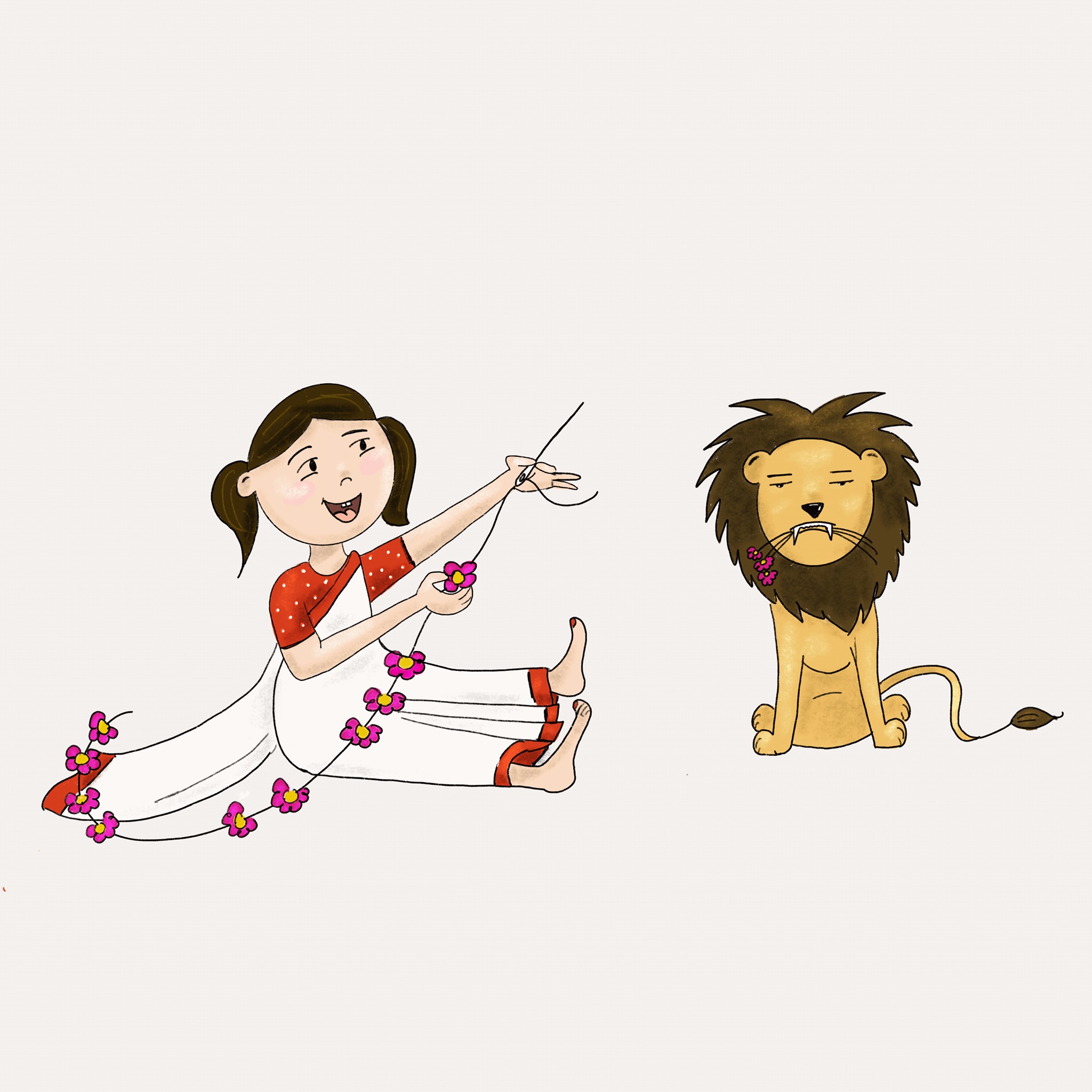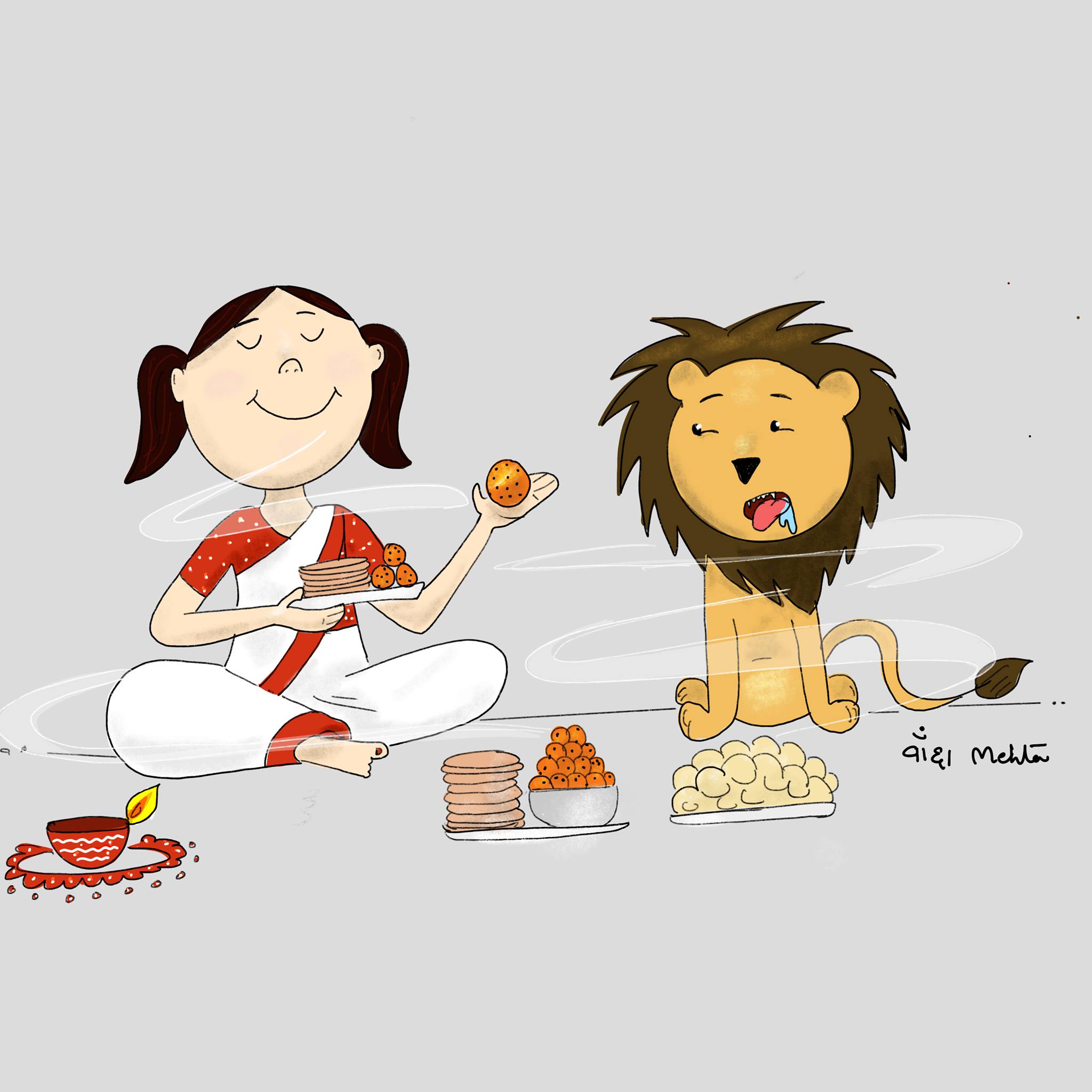 Devi maa and her loyal companion, a majestic lion, embody the strength and courage of the divine feminine. These illustrations were created on navratri 2020 at times of Covid to spread happiness and positivity.