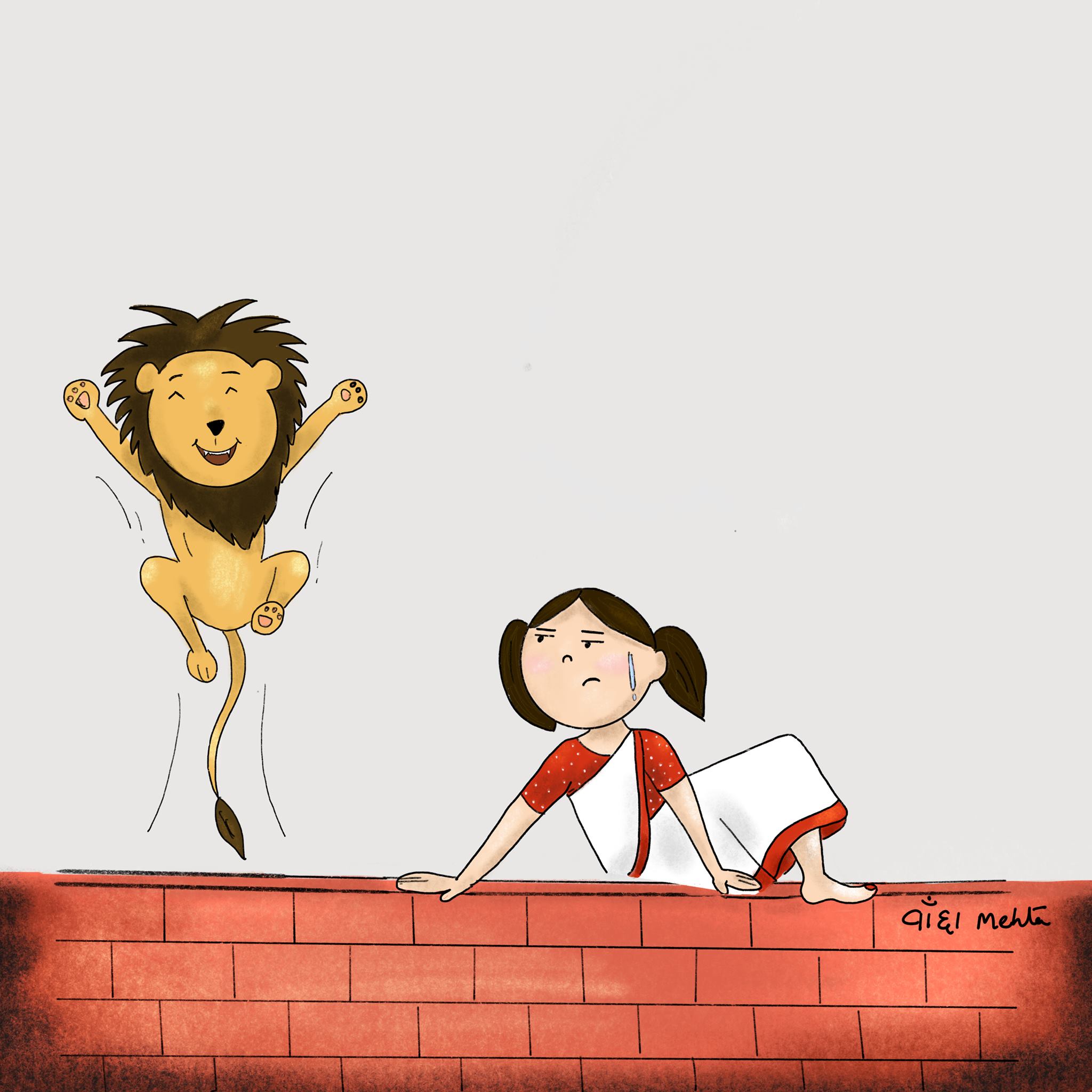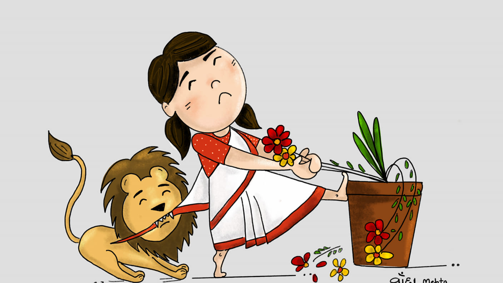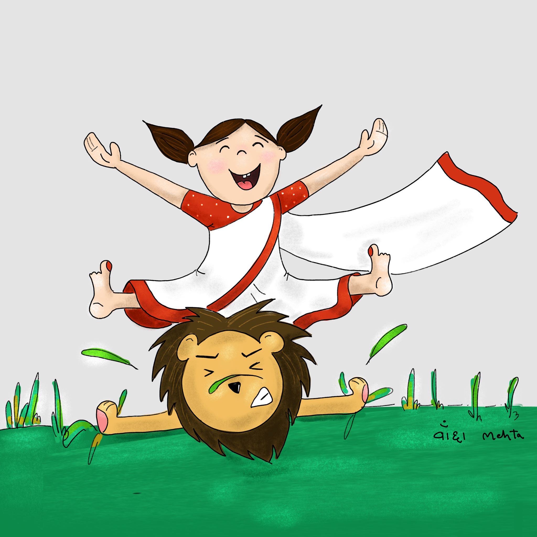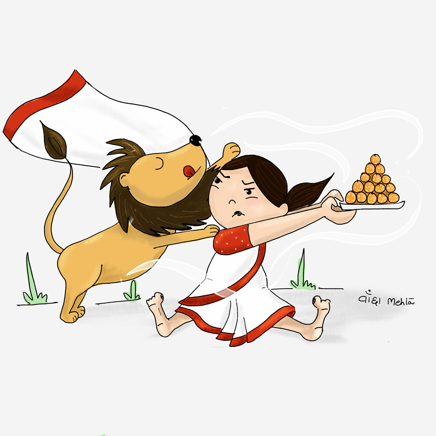 Devi maa and her loyal companion, a majestic lion, embody the strength and courage of the divine feminine. These illustrations were created on navratri 2020 at times of Covid to spread happiness and positivity.