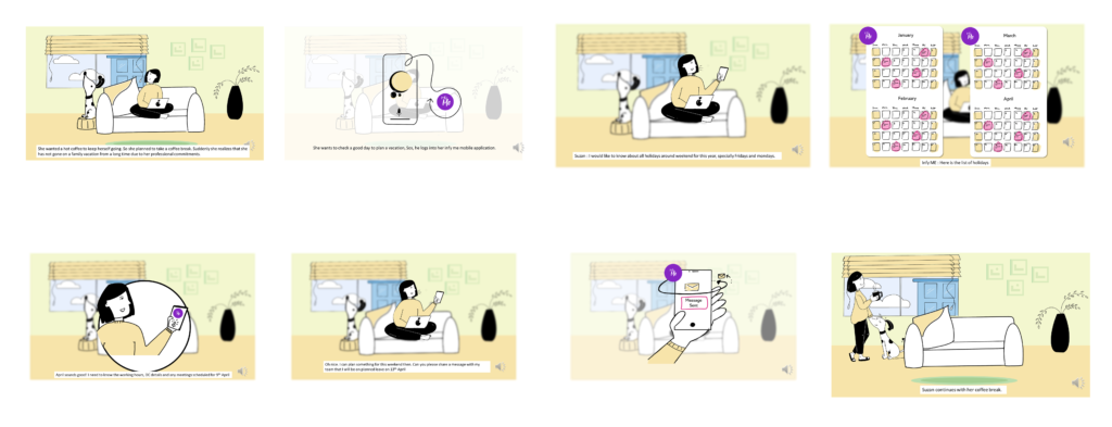 Created demo slides and storyboards to visually communicate concepts, user flows, and feature ideas. The work focuses on structuring information clearly, defining the narrative flow, and translating ideas into easy-to-understand visual stories for presentations and demos.